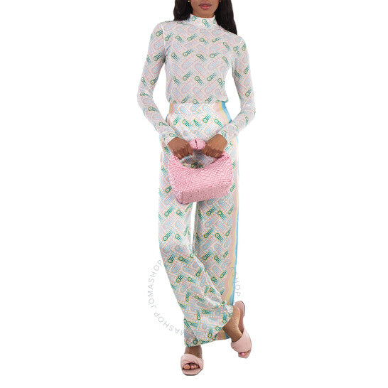 Maria La Rosa Ladies Top Handle Bag. SKU: SB23.11.2 MLR-ROSE. Color: Rose. Size: 20 x 23 x 15 cm. Maria La Rosa Rose Mini Datolite Bag. The mini Datolie bag from Maria La Rosa is a handcrafted statement piece featuring an intricate woven ribbon design. Its knotted handle adds a sculptural touch, while the soft, flexible structure offers both elegance and functionality. Finished with a secure zip closure, this mini bag is perfect for carrying essentials with style. Made in Italy.