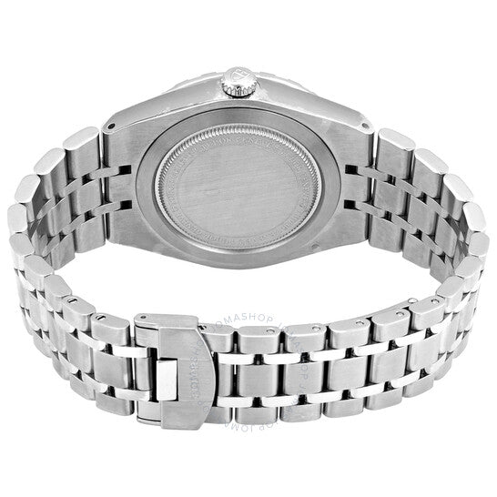 Silver-tone 316L stainless steel case and bracelet. Fixed silver-tone 316L stainless steel bezel. Black dial with luminous silver-tone hands and Roman numeral hour markers. Minute markers around the outer rim. Dial Type: Analog. Luminescent hands. Date display at the 3 o'clock position. Tudor Calibre T601 Automatic movement, based upon ETA 2824, containing 25 Jewels, bitting at 28800 vph, and has a power reserve of approximately 38 hours. Scratch resistant sapphire crystal. Screw down crown. Solid case back. Round case shape, case size: 38 mm. Fold over clasp. Water resistant at 100 meters / 330 feet. Functions: date, hour, minute, second. Royal Series. Luxury watch style. Watch label: Swiss Made. Tudor Royal Automatic Black Dial 38 mm Men's Watch M28500-0003.