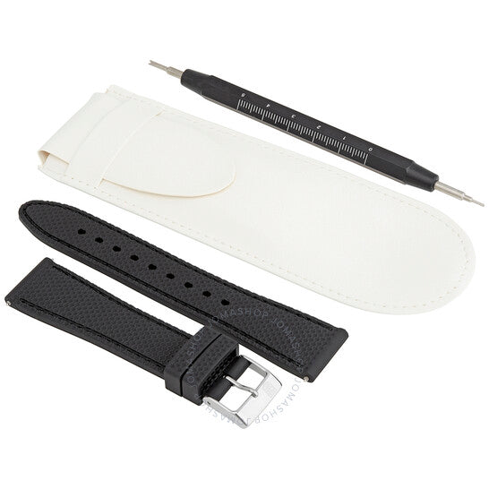 Stainless steel case with a brown leather strap. Fixed stainless steel bezel. Black dial with luminous silver-tone hands and alternating Roman numeral and index hour markers. Minute markers around the outer rim. Dial Type: Analog. Luminescent hands. Date display above the 6 o'clock position. Chronograph - three sub-dials displaying: 60 second, 30 minute and 12 hour. Frederique Constant calibre FC-392 automatic movement, based upon ETA 7750, containing 25 Jewels, bitting at 28800 vph, and has a power reserve of approximately 42 hours. Scratch resistant sapphire crystal. Transparent case back. Round case shape. Case size: 42 mm. Case thickness: 10 mm. Band width: 21 mm. Tang clasp. Water resistant at 50 meters / 165 feet. Functions: chronograph, date, hour, minute, second. Runabout Series. Dress watch style. Watch label: Swiss Made. Frederique Constant Runabout Automatic Chronograph Men's Watch FC-392MDG5B6.