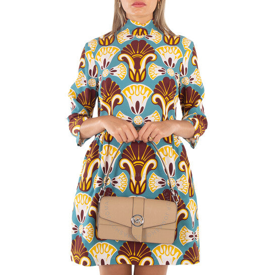 Michael Kors Ladies Shoulder Bag. SKU: 30T2SGRL1L-222. Color: Camel. Size: 10âW x 5.5âH x 3.75âD. Michael Kors Saffiano Leather Shoulder Bag. This shoulder bag features a metal hardware and interchangeable straps. On the exterior, it has back and front slip pockets. The interior includes a back slip pocket, a center zip pocket, and three card slots, all secured with a turn-lock closure. 100% Leather. 100% Polyester.
