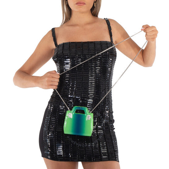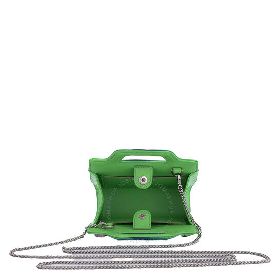 Ferragamo Ladies Shoulder Bag. SKU: 213984 765764. Barcode: 8056283282987. Color: Green. Size: H: 4.5" x W: 5" x D: 2". Salvatore Ferragamo Wanda Micro Shoulder Bag. Top handle. Double Gancini buckle. Detachable shoulder strap. One main compartment. Two tone color. Material: 100% calf leather. Made in Italy.