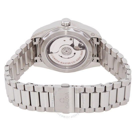 Silver-tone stainless steel case and bracelet. Fixed silver-tone stainless steel bezel. Black dial with silver-tone hands and index hour markers. Minute markers around the outer rim. Dial Type: Analog. Luminescent hands and markers. Date display at the 6 o'clock position. Omega Calibre 8800 Automatic movement, containing 35 Jewels, bitting at 25200 vph, and has a power reserve of approximately 55 hours. Scratch resistant sapphire crystal. Transparent see through case back. Round case shape, case size: 38 mm. Fold over clasp with a safety release. Water resistant at 150 meters / 500 feet. Functions: date, hour, minute, second, co-axial escapement, chronometer, magnetic resistant. Seamaster Series. Luxury watch style. Watch label: Swiss Made. Omega Seamaster Automatic Chronometer Black Dial Men's Watch 220.10.38.20.01.004.