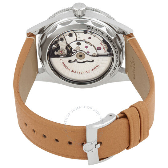 Stainless steel case with a beige leather strap. Uni-directional rotating stainless steel bezel with an inlaid blue aluminium ring. Blue dial with luminous silver-tone hands and index hour markers. Arabic numerals appear at the 3, 6, 9 and 12 o'clock positions. Minute markers around the outer rim. Dial Type: Analog. Luminescent hands and markers. Omega calibre 8912 automatic movement, containing 39 Jewels, bitting at 25200 vph, and has a power reserve of approximately 60 hours. Scratch resistant sapphire crystal. Screw down crown. Transparent case back. Round case shape. Case size: 41 mm. Band width: 21 mm. Tang clasp. Water resistant at 300 meters / 1000 feet. Functions: hour, minute, second, co-axial escapement, chronometer. Additional Info: original box, manual (complete accessories). Seamaster Series. Luxury watch style. Watch label: Swiss Made. Omega Seamaster Automatic Chronometer Blue Dial Men's Watch 234.32.41.21.03.001.