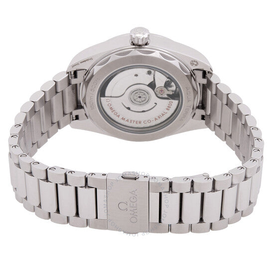 Silver-tone stainless steel case and bracelet. Fixed silver-tone stainless steel bezel. Green dial with black hands and index hour markers. Minute markers around the outer rim. Dial Type: Analog. Luminescent hands and markers. Date display at the 6 o'clock position. Omega Calibre 8800 Automatic movement, containing 35 Jewels, bitting at 25200 vph, and has a power reserve of approximately 55 hours. Scratch resistant sapphire crystal. Screw down crown. Transparent see through case back. Round case shape, case size: 38 mm. Fold over clasp with a safety release. Water resistant at 150 meters / 500 feet. Functions: date, hour, minute, second, co-axial escapement, chronometer, magnetic resistant. Seamaster Series. Luxury watch style. Watch label: Swiss Made. Omega Seamaster Automatic Chronometer Green Dial Men's Watch 220.10.38.20.03.005.