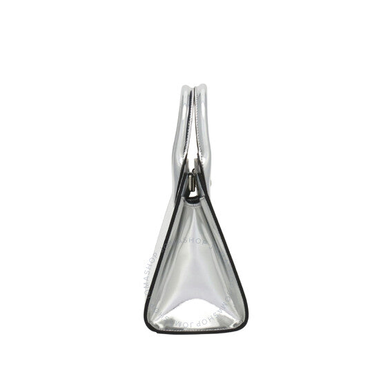 Ferragamo Ladies Tote. SKU: 211424 763291. Material: Calfskin;Lambskin. Color: Silver. Size: W:22cm x H:19cm x D:11cm. Ferragamo Small Studio Box Gancini Buckle Tote Bag. This tote bag is crafted from lambskin and features a Gancini buckle, two rolled top handles, an internal slip pocket, and a removable shoulder strap. Outer: 100% calfskin, Lining: 100% lambskin. Made in Italy.