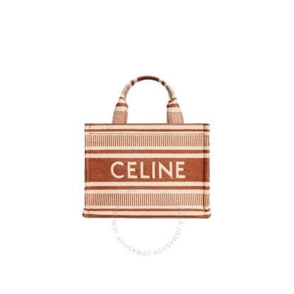 Celine Ladies Tote. Thais series. SKU: 199162FU628SI. Barcode: 3616900587205. Color: Beige. Size: 10.5 x 7.5 x 5.5 inches. Celine Small Thais Canvas Tote - Beige. The Thais Canvas Tote features a main compartment, dual top carry handles, and a detachable crossbody strap. It is accented with striped detailing and a bold logo print on the front. Material: canvas.