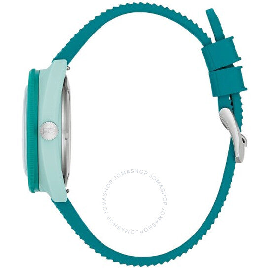 Turquoise hybrid-ceramic case with a turquoise rubber strap. Uni-directional rotating grey inlaid with green hybrid-ceramic bezel. Browm dial with silver-tone hands and index hour markers. Minute markers around the outer rim. Dial Type: Analog. Luminescent hands and markers. Date display at the 3 o'clock position. Bulova Calibre 2115 quartz movement. Scratch resistant mineral crystal. Screw down crown. Solid case back. Round case shape, case size: 41 mm. Band width: 20 mm. Buckle clasp. Water resistant at 100 meters / 330 feet. Functions: date, hour, minute, second. Snorkel Sea Turtle Series. Casual watch style. Bulova Snorkel Sea Turtle Quartz Men's Watch 98B446.