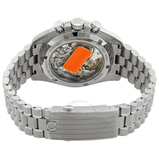 Stainless steel case with a stainless steel bracelet. Fixed stainless steel bezel with an inlaid black aluminium ring showing tachymeter markings. Black dial with luminous silver-tone hands and index hour markers. Minute markers around the outer rim. Dial Type: Analog. Luminescent hands and markers. Omega calibre 3861 hand wind movement. Scratch resistant sapphire crystal. Screw down crown. Transparent case back. Round case shape. Case size: 42 mm. Case thickness: 13.18 mm. Band width: 20 mm. Foild over with push button release clasp. Water resistant at 50 meters / 165 feet. Functions: chronograph, tachymeter, hour, minute, second. Additional Info: original box, manual (complete accessories). Speedmaster Series. Luxury watch style. Watch label: Swiss Made. Omega Speedmaster Chronograph Hand Wind Black Dial Men's Watch 310.30.42.50.01.002.