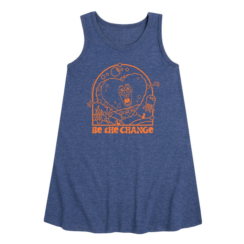 SpongeBob SquarePants - Be The Change - Toddler & Youth Girls A-line Dress - Dive into the fun of Bikini Bottom with SpongeBob SquarePants graphic apparel! Featuring colorful designs of SpongeBob, Patrick, Squidward, Sandy, and more, this collection brings the show's quirky humor and unforgettable moments to life. Perfect for fans of all ages, these pieces add a splash of personality to any wardrobe.