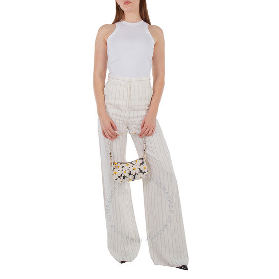 Coach Ladies Handbag. SKU: CR509 B4CAH. Color: White. Size: Length: 7.75" x Height: 4.75" x Width: 2.5". Coach Swinger Bag 20 With Floral Print. Crafted from Glovetanned leather, this bag features a main compartment with three credit card slots, a zip-top closure, fabric lining, and a detachable handle with a 7.75" drop. It also includes a short strap and is adorned with a dramatic daisy motif all over.