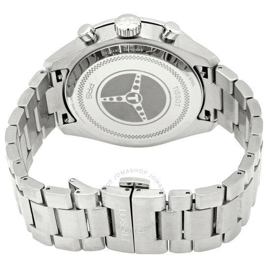 316L stainless steel case with a 316L stainless steel bracelet. Fixed stainless steel bezel showing tachymeter markings. Blue dial with white hands and Arabic numeral hour markers. Minute markers around the outer rim. Tachymeter scale. Dial Type: Analog. Luminescent hands and markers. Date display at the 6 o'clock position. Chronograph - three sub-dials displaying: 60 second, 30 minute and 1/10th of a second. ETA caliber G10.212 quartz movement. Scratch resistant sapphire crystal. Solid case back. Round case shape. Case size: 45 mm. Case thickness: 12.1 mm. Band width: 22 mm. Butterfly clasp with a push button release. Water resistant at 100 meters / 330 feet. Functions: chronograph, rattrapante, date, hour, minute, small second. T-sport Series. Sport watch style. Watch label: Swiss Made. Tissot T-Sport Chronograph Quartz Blue Dial Men's Watch T131.617.11.042.00.