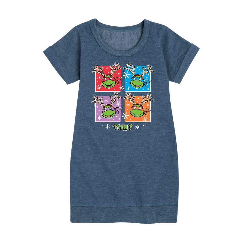 Teenage Muntant Ninja Turtle - Reindeer Turtles - Toddler And Youth Girls Fleece Dress - Unleash your inner hero with Teenage Mutant Ninja Turtles graphic apparel, featuring bold and colorful designs of the iconic heroes in a half shell—Leonardo, Donatello, Raphael, and Michelangelo. Perfect for fans of all ages, this collection celebrates the action-packed adventures, brotherhood, and fun-loving spirit of these legendary sewer-dwelling ninjas.