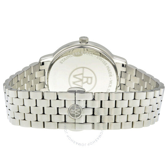 Stainless steel case with a stainless steel bracelet. Fixed stainless steel bezel. White dial with silver-tone hands and Roman numeral hour markers. Minute markers around the outer rim. Dial Type: Analog. Date display at the 3 o'clock position. Quartz movement. Scratch resistant sapphire crystal. Case diameter: 42 mm. Case thickness: 7.82 mm. Round case shape. Deployment clasp. Water resistant at 50 meters / 165 feet. Functions: date, hour, minute. Dress watch style. Watch label: Swiss Made. Raymond Weil Toccata White Dial Steel Bracelet Men's 42 mm Watch 5588-ST-00300.