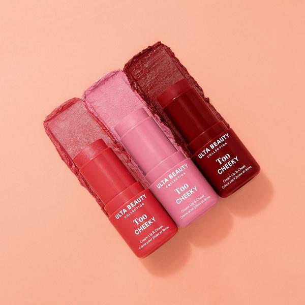 For your ultimate monochromatic look. Ulta Beauty Collection's Too Cheeky Lip & Cheek Color Stick is 2-in-1, dual-purpose cream formula with buildable coverage that gives a luminous, lip and cheek flush in a variety of shades and finishes, including matte, shimmer, and satin.