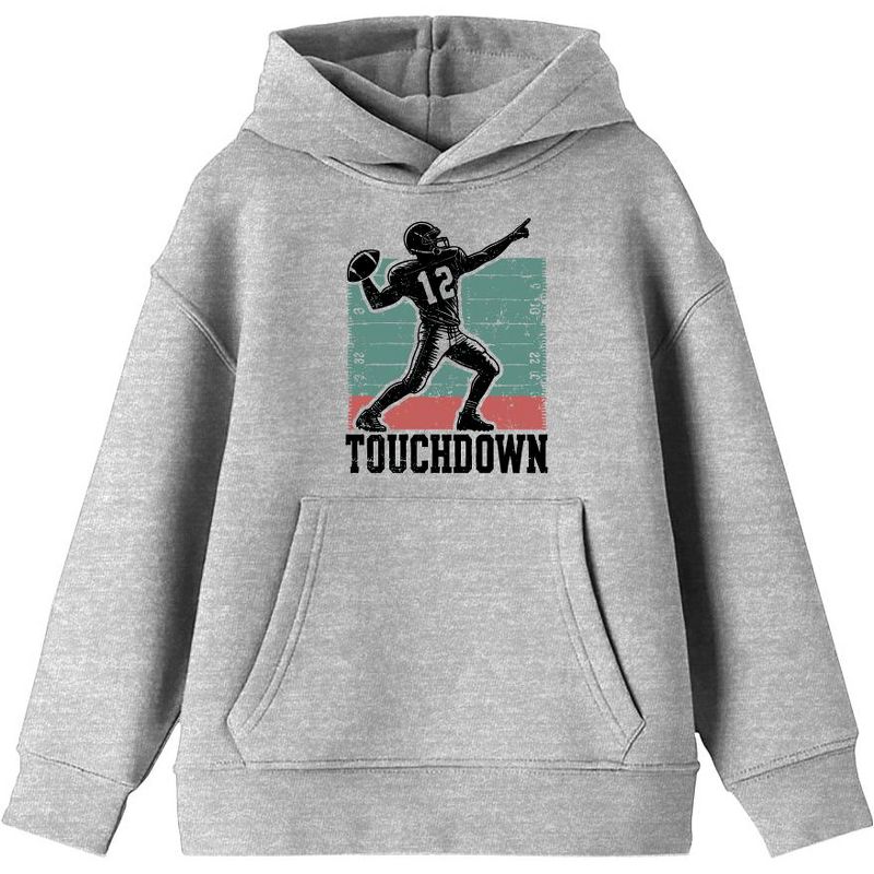 Celebrate your love for football with this bold apparel featuring a dynamic graphic of a football player in action, mid-throw, with the word "TOUCHDOWN" prominently displayed underneath. Perfect for fans of the game, this design captures the excitement and power of a winning play. Made from high-quality materials for comfort and durability, it's great for wearing on game day or any day. To maintain its sharp look, simply machine wash in cold water with like colors. Make a statement on and off the field with this energetic football-inspired design!