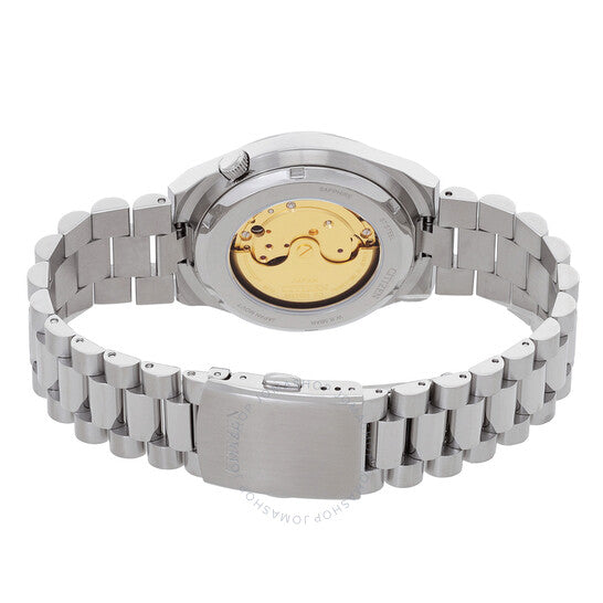 Silver-tone stainless steel case and bracelet. Fixed silver-tone stainless steel bezel. Peaceful green dial with silver-tone hands and index hour markers. Minute markers around the outer rim. Dial Type: Analog. Luminescent hands and markers. Date display at the 3 o'clock position. Citizen Caliber 8210 Automatic movement, containing 21 Jewels, bitting at 21600 vph, and has a power reserve of approximately 45 hours. Scratch resistant sapphire crystal. Pull / push crown. Transparent case back. Round case shape, case size: 40 mm, case thickness: 11.7 mm. Fold over clasp with a safety release. Water resistant at 50 meters / 165 feet. Functions: date, hour, minute, second. Nj015 Series. Casual watch style. Watch label: Japan Movt. Citizen NJ015 Automatic Peaceful Green Dial Men's Watch NJ0158-89Z.