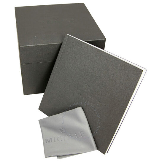 Stainless steel case and bracelet. Stainless steel bezel. Textured black enamel dial with luminous hands and Arabic numeral hour markers. Seconds sub-dial at the 6 o'clock position. Quartz movement. Scratch resistant sapphire crystal. Case diameter: 36 mm. Deployment clasp. Water resistant up to 50 meters / 165 feet. Bracelet is interchangeable with any 20mm Michele bracelet. Michele Urban Steel Ladies Watch MWW02M000024