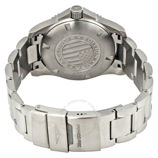 Stainless steel case with a stainless steel bracelet. Uni-directional rotating stainless steel bezel with a blue ceramic inlay. Blue dial with luminous silver-tone hands and index hour markers. Arabic numerals mark the 6, 9 and 12 o'clock positions. Minute markers around the outer rim. Dial Type: Analog. Luminescent hands and markers. Date display at the 3 o'clock position. Longines Calibre 619/888 automatic movement with a 42-hour power reserve. Scratch resistant sapphire crystal. Screw down crown. Solid case back. Round case shape. Case size: 41 mm. Case thickness: 12 mm. Band width: 21 mm. Fold over clasp. Water resistant at 300 meters / 1000 feet. Functions: date, hour, minute, second. Additional Info: includes an additional rubber NATO strap. Dress watch style. Watch label: Swiss Made. Longines USA Exclusive HydroConquest Automatic Blue Dial Men's Watch L37424986.