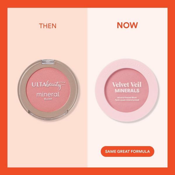 For satin skin lovers - meet Ulta Beauty Collection's Velvet Veil Minerals Powder Blush. This luxe, smooth formula gives the skin a soft, luminous finish. Apply for a light sheen or build up to a higher coverage intensity. Formerly known as Mineral Blush.