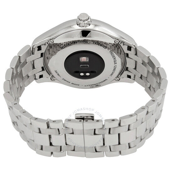 Stainless steel case with a stainless steel bracelet. Fixed stainless steel bezel. Blue Analog / digital dial with silver-tone hands and alternating Roman numeral and index hour markers. Arabic numeral minute markers (at 5 minute intervals). Minute markers around the outer rim. Dial Type: Analog-digital. Frederique Constant calibre FC-287 quartz movement. Scratch resistant sapphire crystal. Solid case back. Round case shape. Case size: 42 mm. Fold over clasp with a safety release. Water resistant at 50 meters / 165 feet. Functions: hour, minute. Vitality Series. Sport watch style. Watch label: Swiss Made. Frederique Constant Vitality Quartz Analog-Digital Blue Dial Men's Smart Watch FC-287N5B6B.