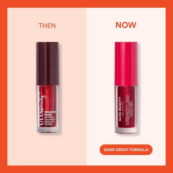 For fresh-picked, natural finish lips. Ulta Beauty Collection's Weightless Water Lip Stain is a quick-dry stain that wears beautifully and hugs lips like a kiss of cool water. Multi-tasker alert: She can be used as a cheeky blush stain too! Packaging may vary, same formula you love.