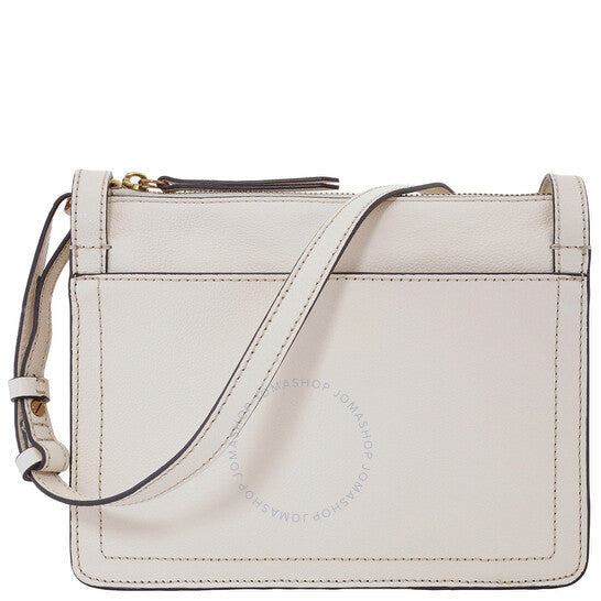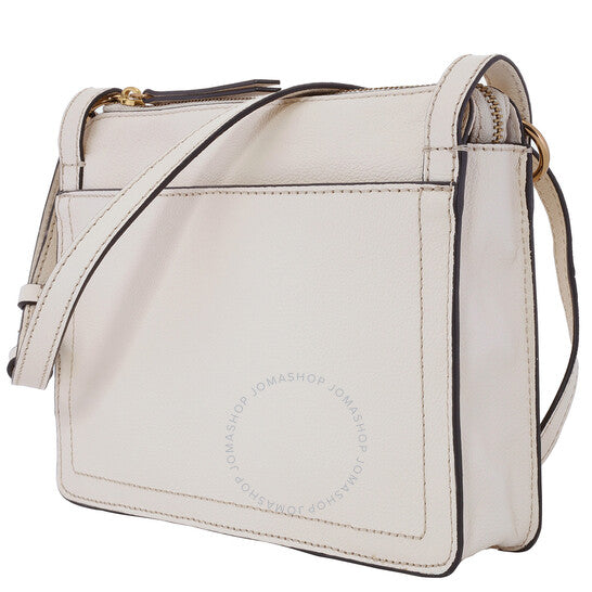 Fossil Ladies Crossbody. SKU: ZB1894105. Color: White. Size: 24.1 cm L x 5.7 cm W x 18.4 cm H. Fossil White Taryn Leather Crossbody Bag. The Taryn bag features a zip closure, gold-tone hardware, an adjustable crossbody strap and a slim design with convenient front and back slide pockets. Material: Leather.